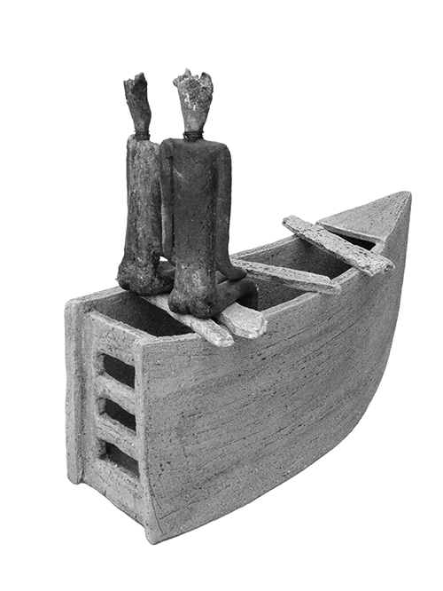 ... ton, aus der erde gewonnen, gebrannt zu stein, ist ein wunderbares material um spuren, brüche, risse und wunden darzustellen. die brüchigkeit der oberfläche weist einerseits auf die vergänglichkeit von allem hin, andererseits verleihen genau diese unregelmässigen strukturen den skulpturen und meinen bildern neues leben.